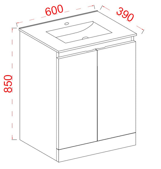 Plumb essentials 600 2 door white gloss vanity unit and basin