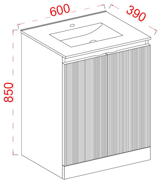Plumb essentials Fluted 600 2 door white gloss vanity unit and basin