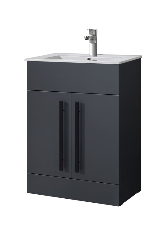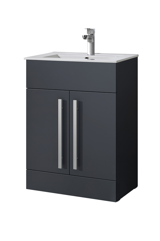 Sorrento 600mm 2 door vanity unit and ceramic basin, white, shadow grey, grey with black handles
