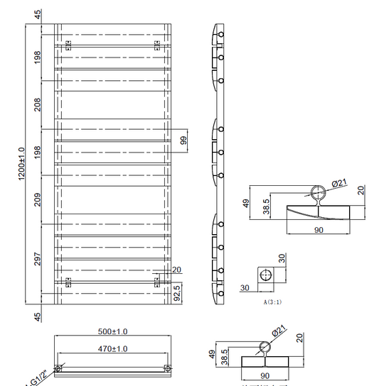 Tailored Hamden anthracite 1200x500mm aluminium radiator TIS2150