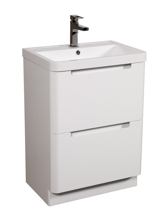 Monza 600 floor standing 2 drawer vanity unit and basin White gloss