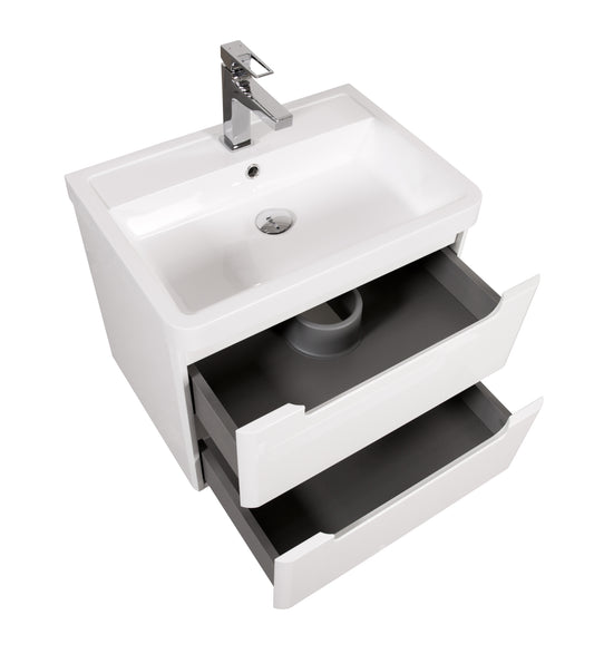 Monza 600mm 2 door wall hung vanity unit and basin White gloss