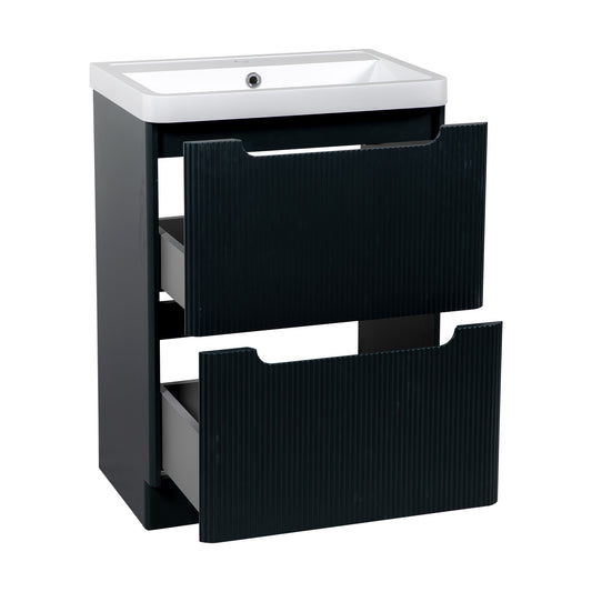 Monza Fluted 600 floor standing 2 drawer vanity unit Shadow grey
