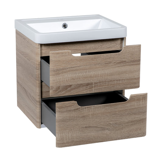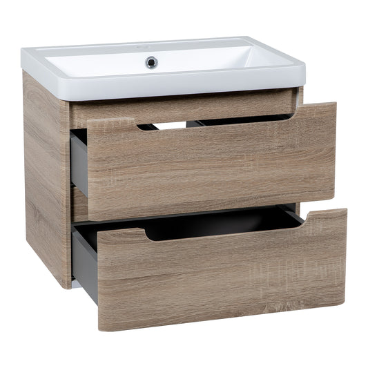 Monza 600mm 2 door wall hung vanity unit and basin Country oak