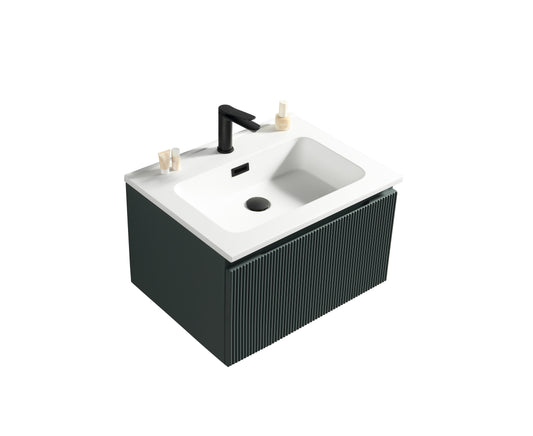 Flauto fluted wall hung vanity unit 600mm smoked sageTIS4296