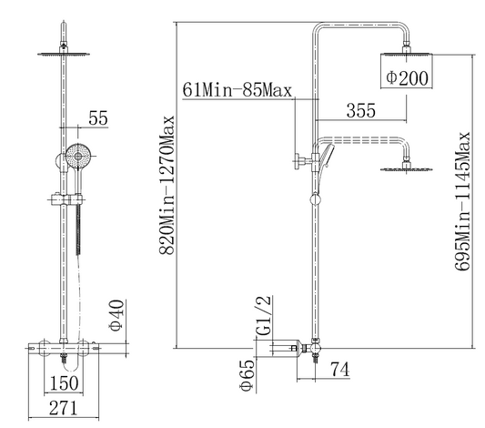 Beaumaris exposed dual shower in orca black TIS0286
