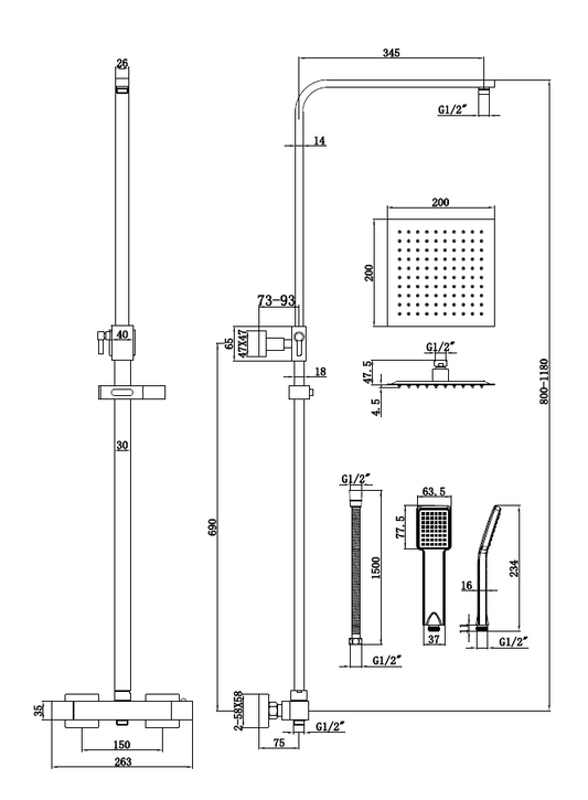 Section contains thermostatic bar showers and concealed shower valves heads and arms.
