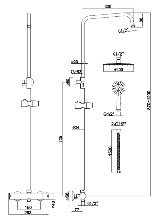 The Round thermostatic ball valve shower complete in BLACK TIS0350