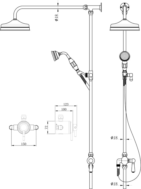 Tenby traditional dual chrome exposed shower TIS0018