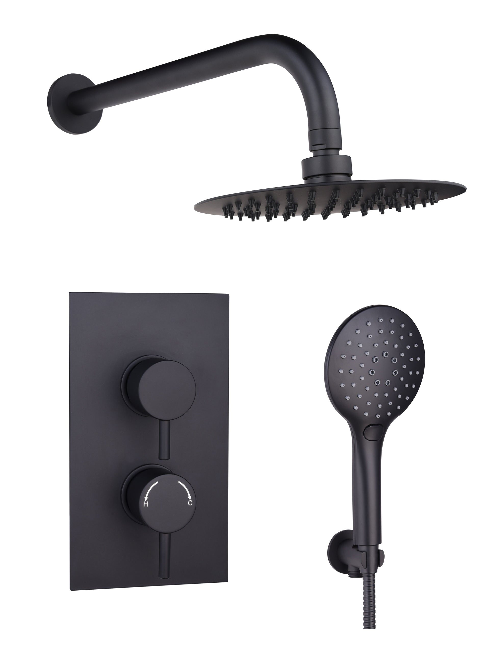 NEW Black Round dual concealed shower valve 2 outlet complete set TIS0347