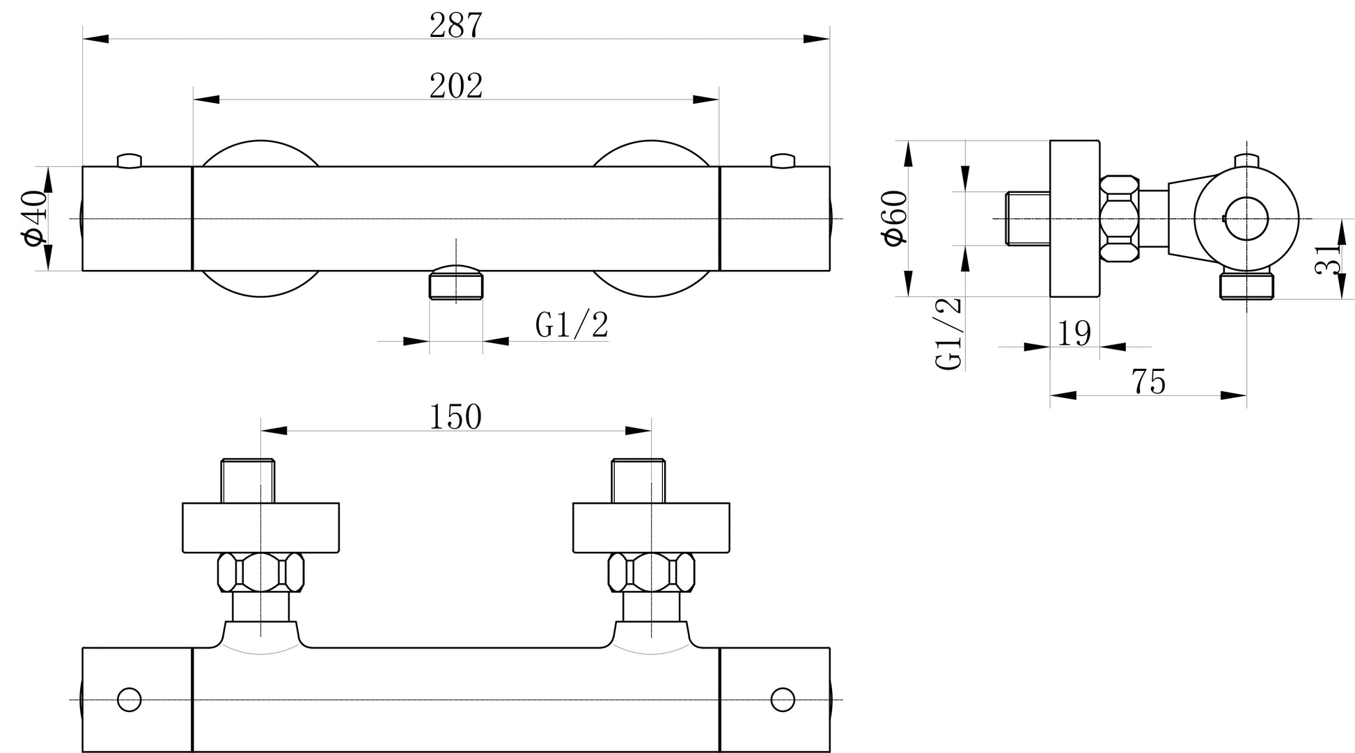 Exposed round thermostatic shower valve in black