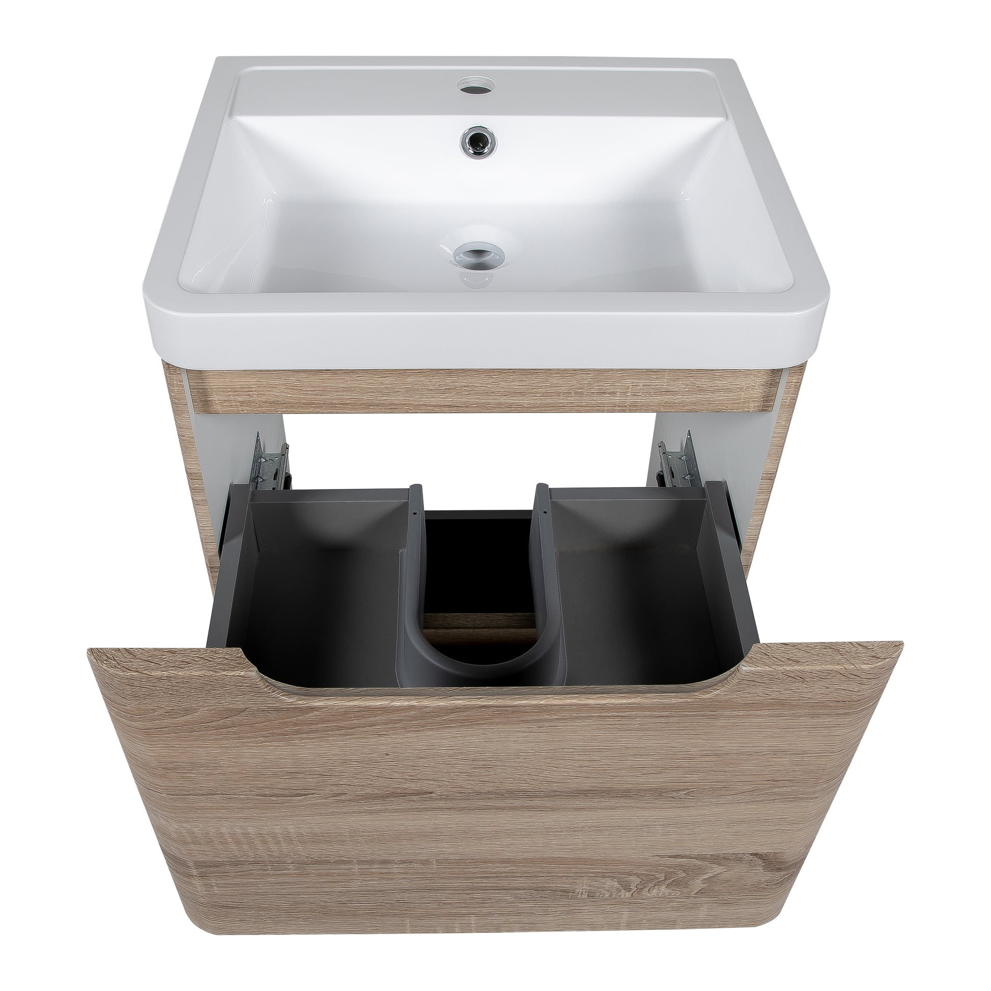 Monza 600 floor standing 2 drawer vanity unit and basin in country oak finish