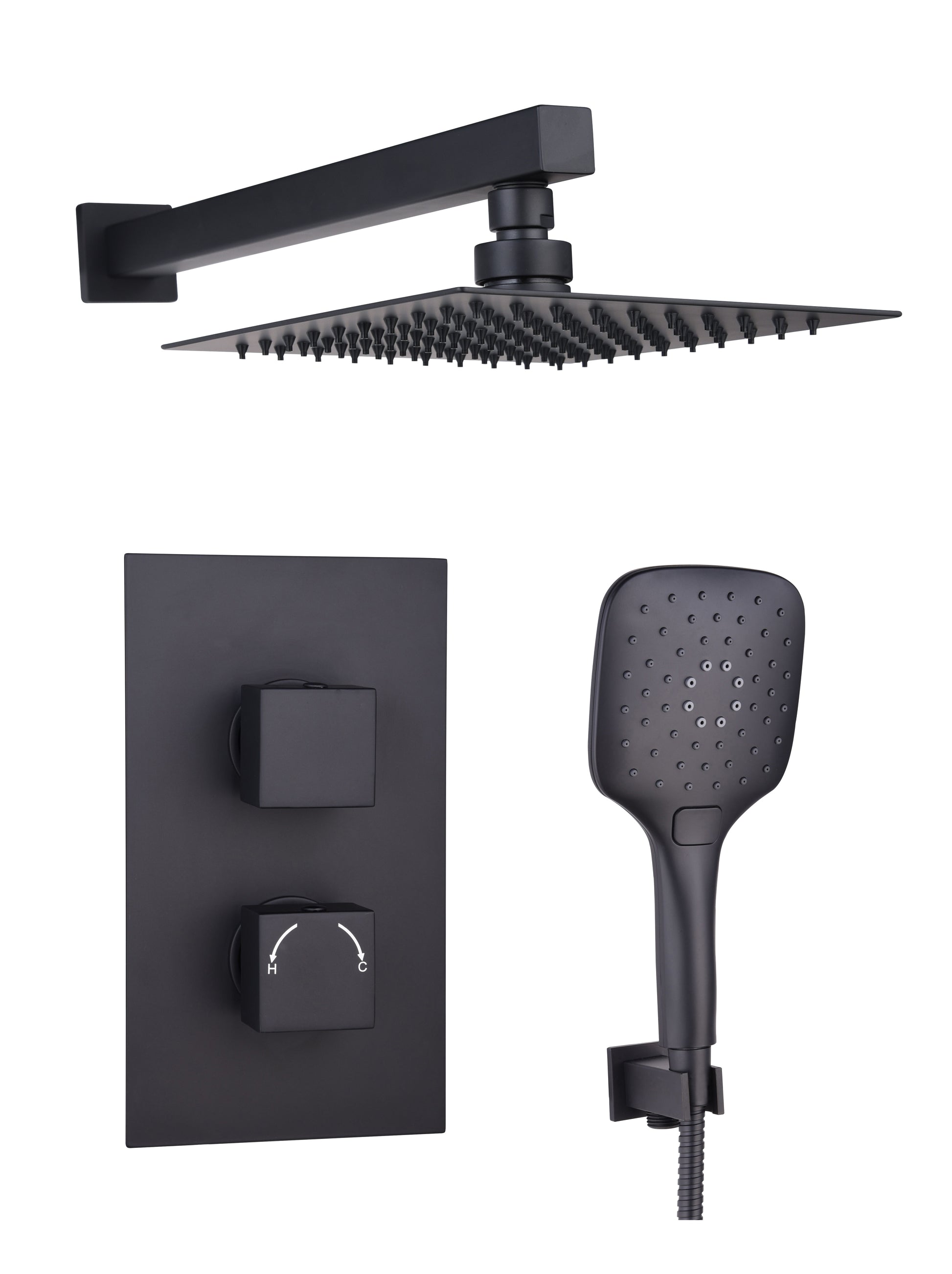 NEW Black Square dual concealed shower valve 2 outlet complete set TIS0346